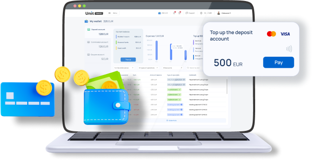 Top up your Unit Wallet by card, bank transfer or you can transfer any amount from your commission account for prompt payment of all bookings. We can open the credit line for large and network agencies.